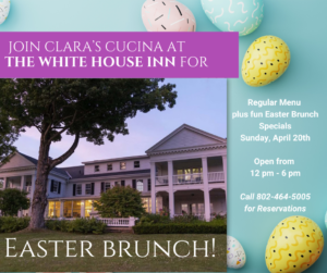 This Easter Sunday, Clara’s Cucina at The White House Inn in Wilmington, VT, invites guests to celebrate the season with a beautifully prepared Easter Brunch in one of southern Vermont’s most charming historic settings.