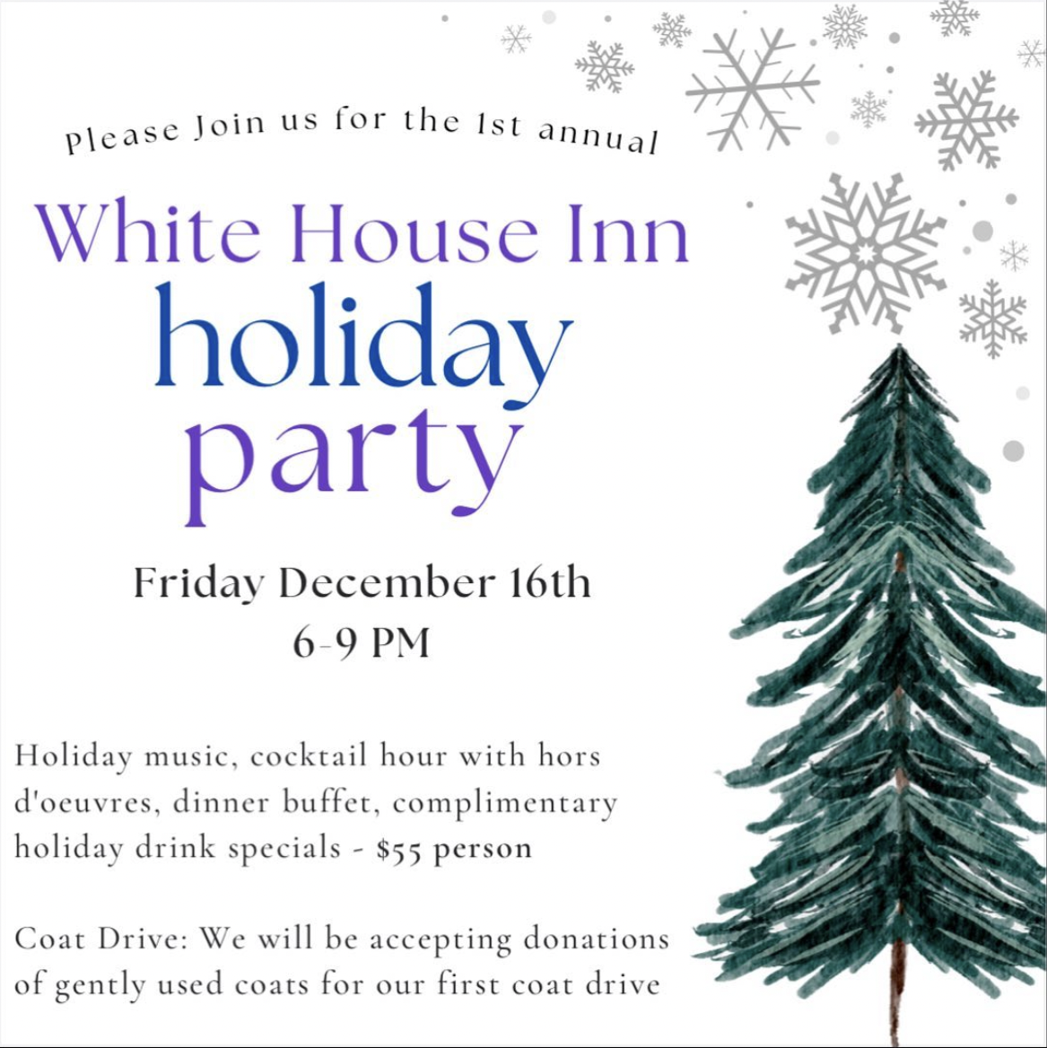 Food, Drinks, and Cheer!! The White House Inn is hosting a holiday party on December 16th (cash bar!) as well as Christmas Eve dinner on 12/24 (closed on Christmas)