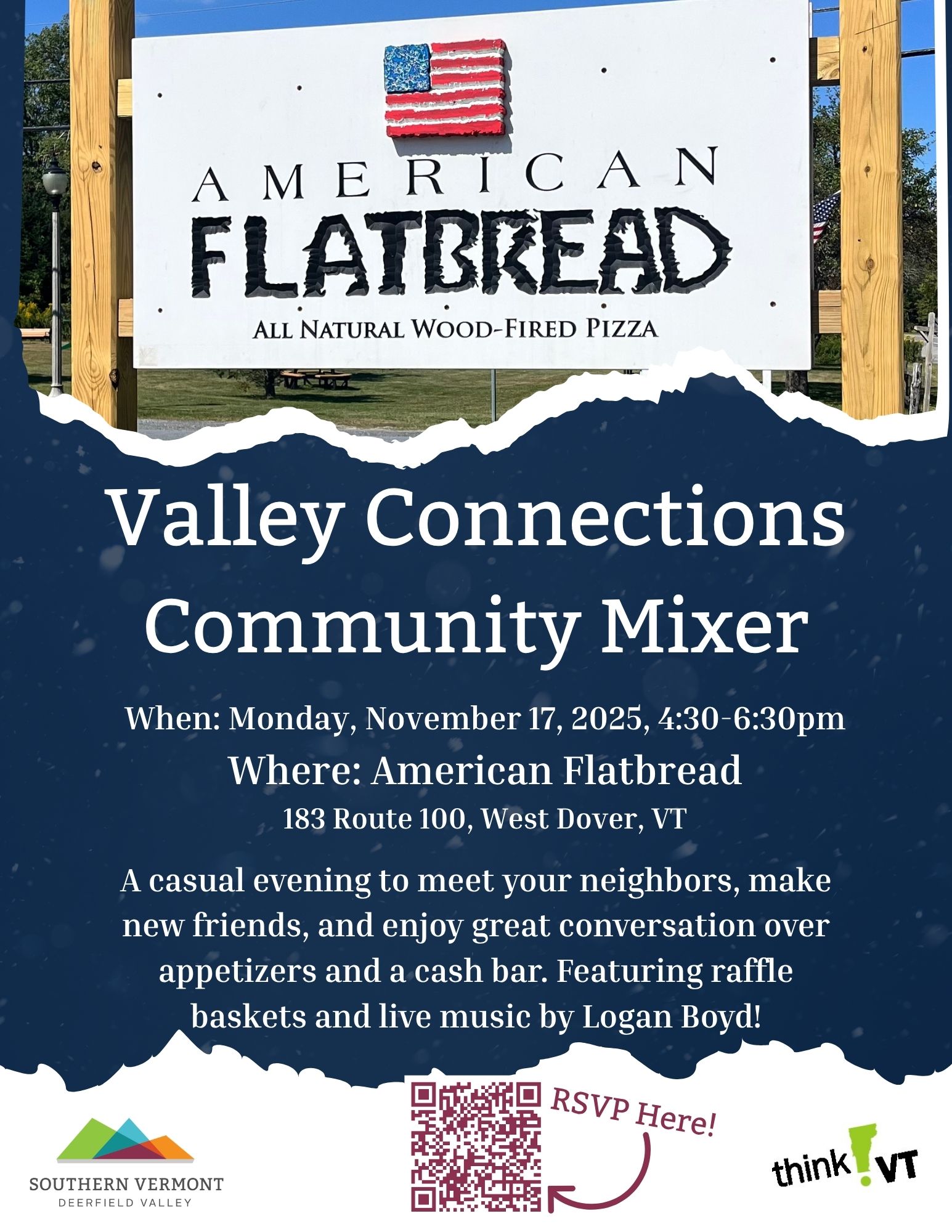 Join us at American Flatbread for a casual evening to meet your neighbors, make new friends, and enjoy great conversation over appetizers and a cash bar. Featuring raffle baskets and […]