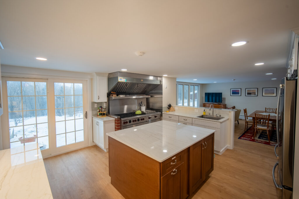 Our newly completed renovations over the winter of 2024 truly showcase the versatility of our facilities. Unwind and relax in our new hot tub, 10-person dry sauna, and massage room where you can book in-house massage services with a local certified massage therapist. We have a brand new “bring-your-own-food” kitchen with commercial-grade appliances for our guests to prepare anything from simple meals to elaborate dinner parties or arrange private chef and catering services.