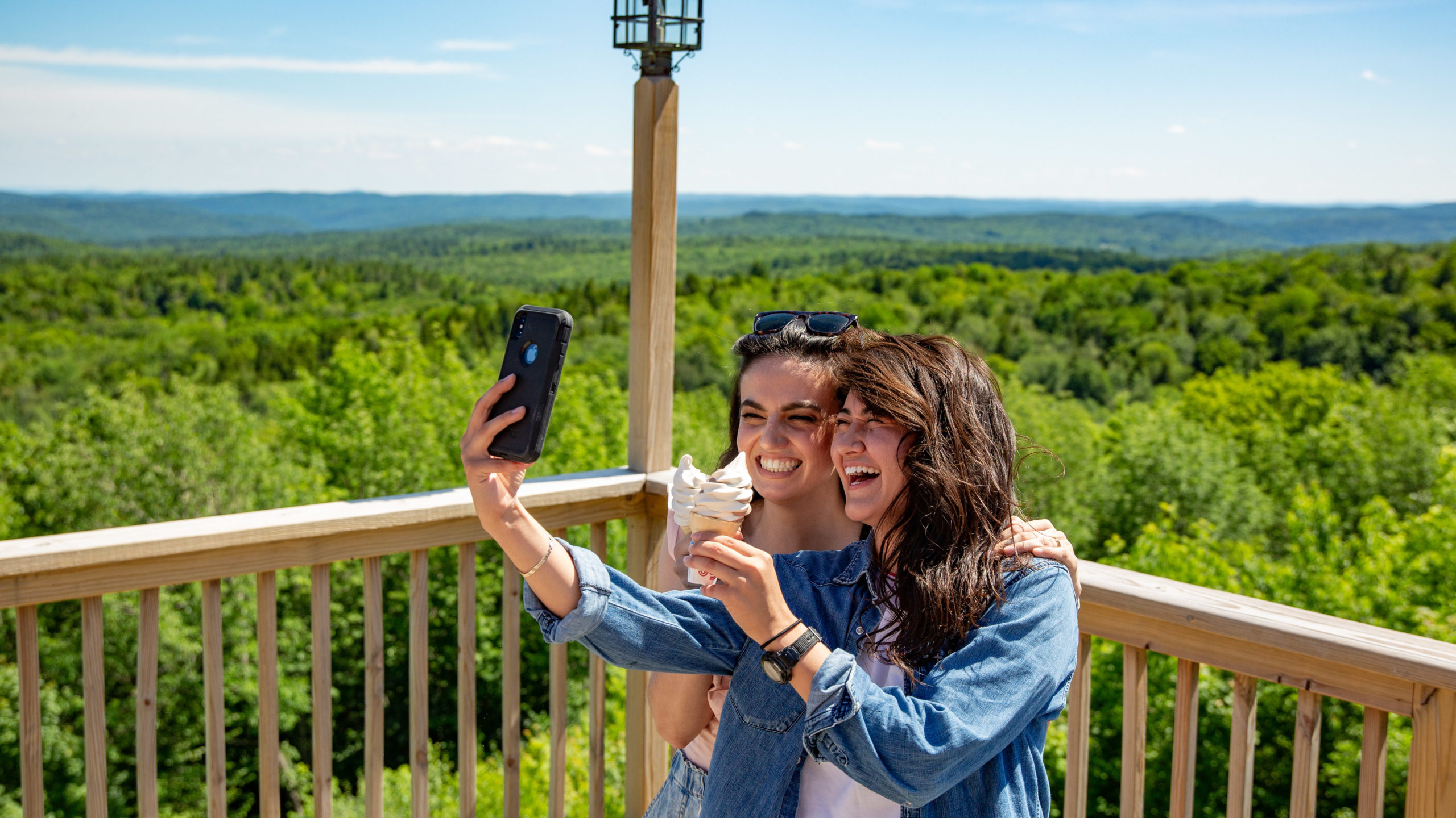 As a child, my family and I hiked Mt. Olga (the former Hogback ski area) many times. It was an easy walk from our home. Now one can access the trailhead from the parking lot by Vermont Distillers in Marlboro via the “Tower Trail”. A well-marked trail takes you to the summit and the fire tower. Along the path to the summit, several former trails have been cleared and offer views to the east. The trail gradually climbs for about a mile. The views from the tower are worth the white-knuckled (at least for me!) climb! I find it a bit challenging to climb the tower with young children, as the hand railing is more at an adult level.